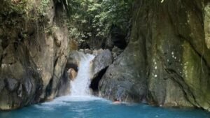 Terkenal dengan kolam alami berwarna biru kehijauan. Area camping sederhana tersedia bagi pengunjung yang ingin bermalam.