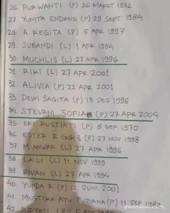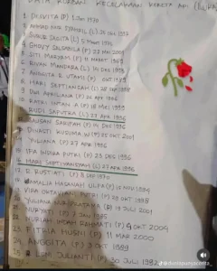 Pasalnya, telah beredar data berupa foto yang didalamnya terlihat secarik kertas putih bertuliskan daftar nama korban lengkap dengan jenis kelamin serta tanggal, bulan, tahun kelahiran ditulis dengan tinta warna hitam.