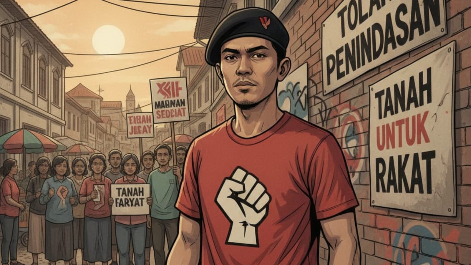 Tatapannya seolah ingin kembali ke romantisme era perjuangan di kampus.