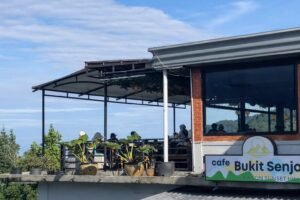 Berlokasi di kawasan Cisarua, Kabupaten Bogor, kafe ini menawarkan panorama perbukitan hijau yang terbuka luas. Area duduk outdoor menjadi spot favorit pengunjung untuk menikmati matahari terbenam di balik pegunungan. Dengan kisaran harga sekitar Rp20.000 hingga Rp200.000, tempat ini cocok untuk bersantai sambil menikmati hidangan ringan maupun makanan berat.