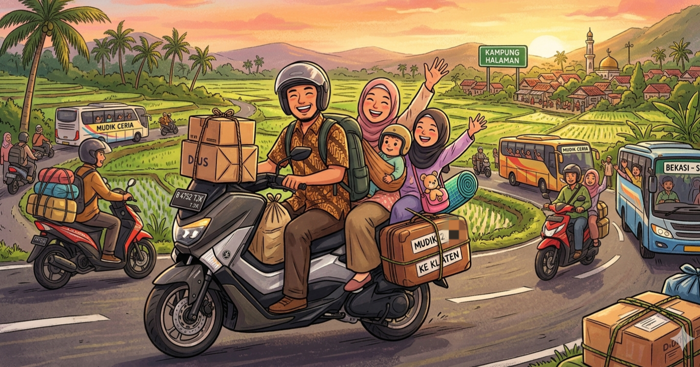 Ilustrasi mudik lebaran ke kampung halaman (Foto: Gemini AI).