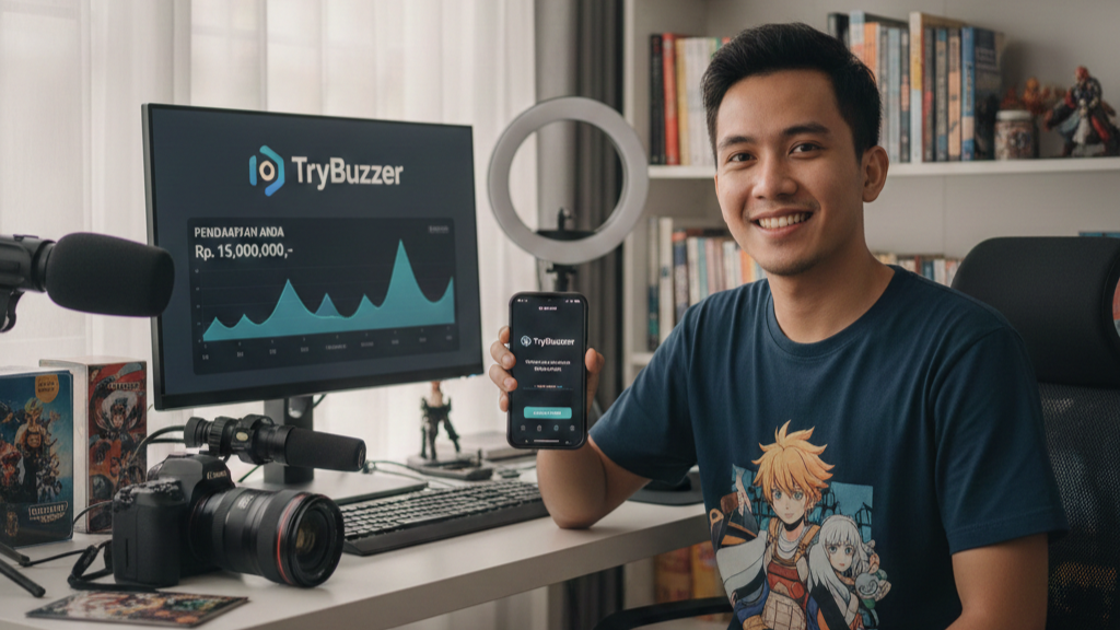 Ilustrasi kreator konten mendapat penghasilan TryBuzzer (Foto: Gemini AI).