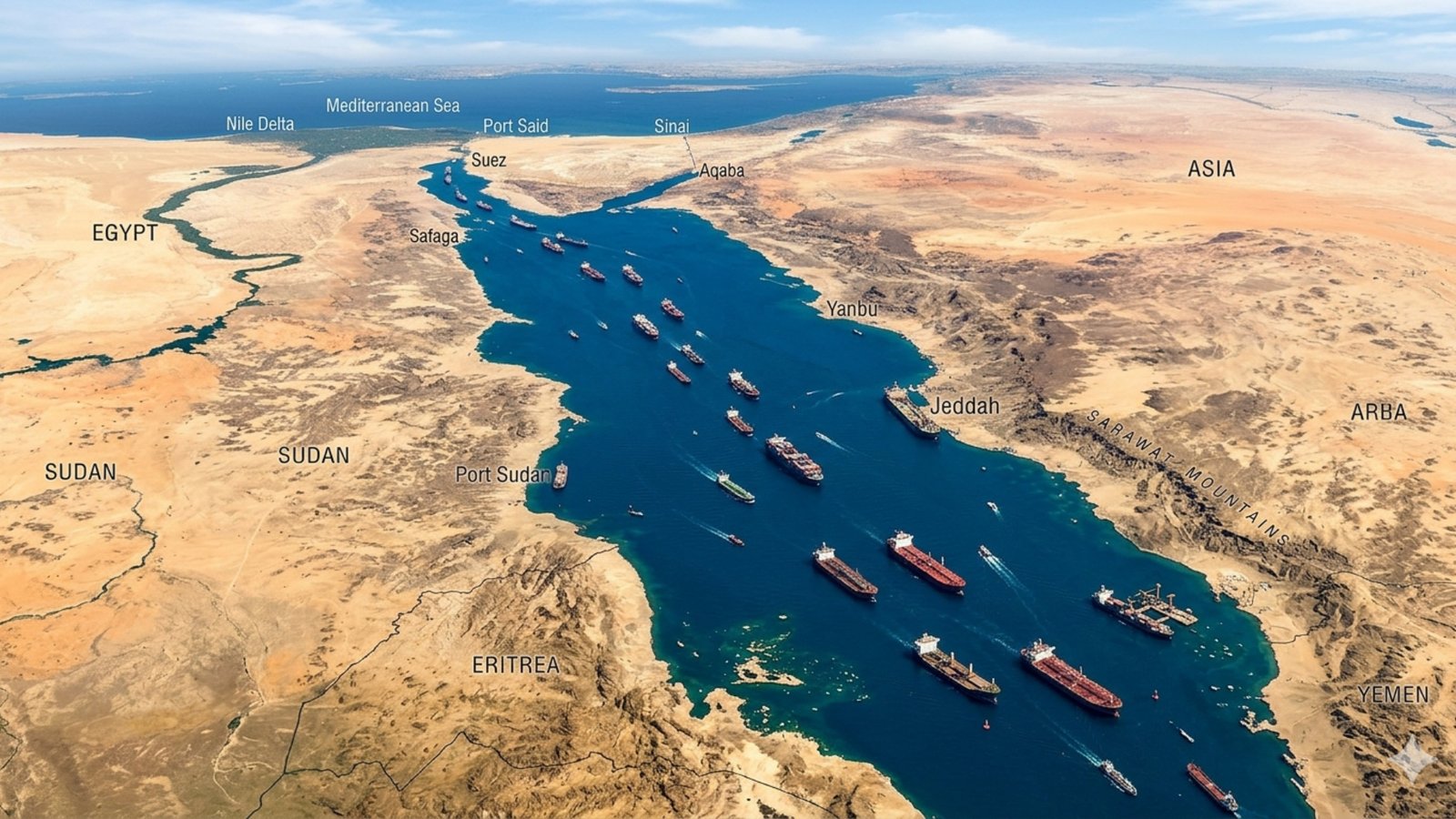 Laut Merah sangat penting bagi Amerika Serikat sebagai jalur perdagangan internasional yang menghubungkan Asia-Eropa via Terusan Suez.