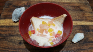 Sebagai pelengkap, Stup tradisional biasanya diberi topping acar cina (pacar cina/sagu mutiara) yang memberikan tekstur kenyal. Namun, seiring perkembangan zaman, versi modern Stup kini sering disajikan dengan taburan keju parut melimpah di atasnya. Perpaduan manis, gurih, dan tekstur roti yang lumer di mulut menjadikan Stup menu favorit yang sangat mengenyangkan.