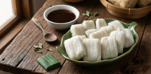 Keunikannya terletak pada wadahnya yang terbuat dari daun pisang berbentuk persegi empat menyerupai sampan kecil. Teksturnya yang sangat lembut menjadikannya pembuka yang sempurna untuk menenangkan perut setelah seharian berpuasa.