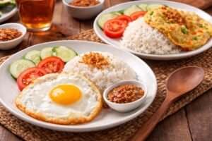 Menu ini bisa dibilang paling praktis dan hampir selalu ada di rumah. Telur mudah dimasak dan kaya protein, sementara nasi menjadi sumber energi utama. Ditambah kecap atau sambal, rasanya sudah nikmat dan mengenyangkan.