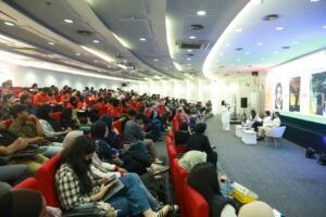 Kegiatan Pertamina Hulu Energi Youth Program: Upstream Force di Universitas Pertamina menghadirkan sesi talkshow dan pemaparan dengan pembicara dari PHE Upstream Champion Theresia Iin Wulandari, Founder Start Your Content Academy Victoria Wong, dan Social Media Manager Kapanlagi Youniverse Eko Setiawan.